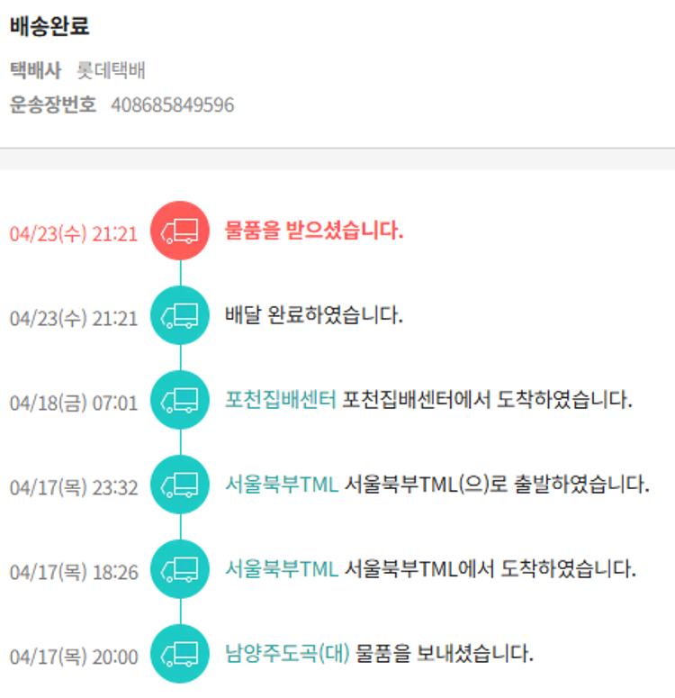 기부자님이 사용한 기부포인트 2,100원, 물품배송비 3,500원, 가격상승분 4,999원, 100원 미만 지원금 25원, 결제 수수료 10,763원, 기타 사업비는 행복나눔재단이 부담했습니다. (기부후기 발송시점에 최종 업데이트 됩니다.) 실제 쇼핑몰에서 확인되는 배송현황을 캡처한 내용입니다. 실시간 자료와는 차이가 있을 수 있습니다.