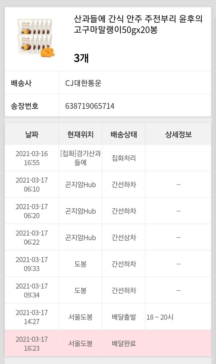 간식 안주 주전부리 윤후의고구마말랭이50gx20봉3개 (개당 21,900원)
