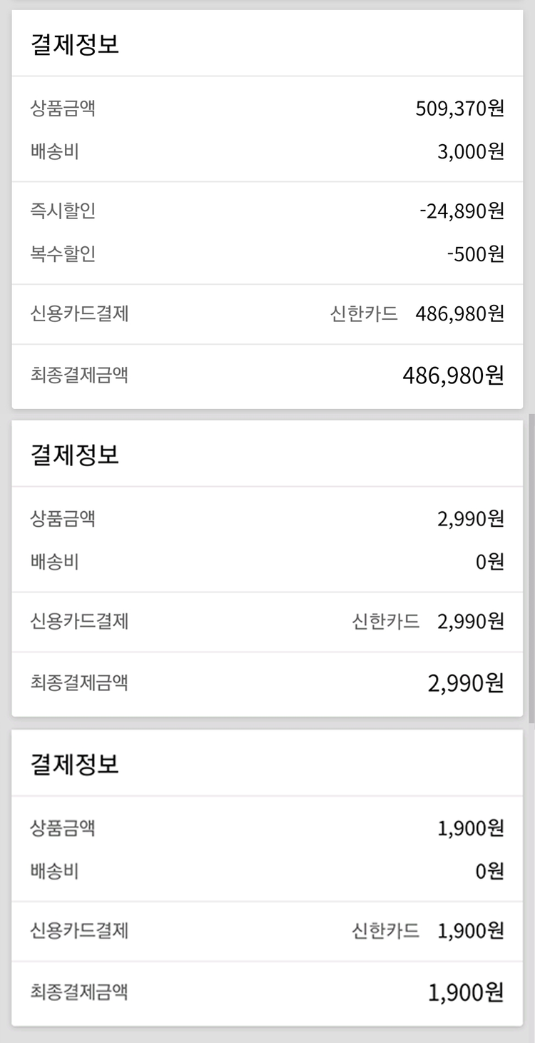- 기부금 결제: 성명, 휴대전화번호, 아이디(이메일주소), 결제정보 (①신용카드정보(카드주명, 카드사명, 카드번호, 유효기간, 카드주 생년월일), ②카카오페이 결제이력, ③은행계좌정보(예금주명, 은행명, 계좌번호)) - 기부금 영수증발급, 연말정산 간소화 서비스 신청: 성명, 주소, (연말정산간소화 서비스 등록 신청 시) 주민등록번호 |