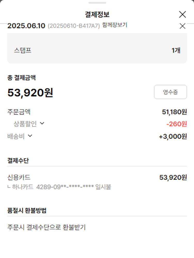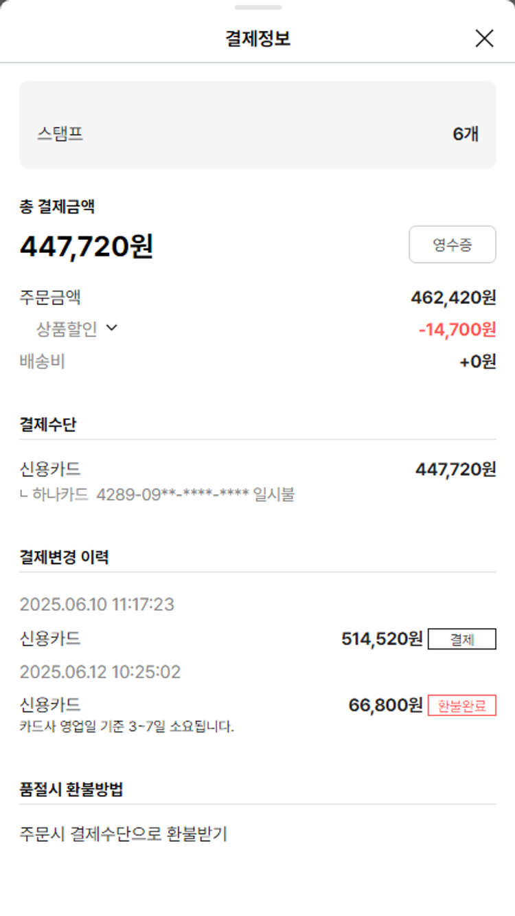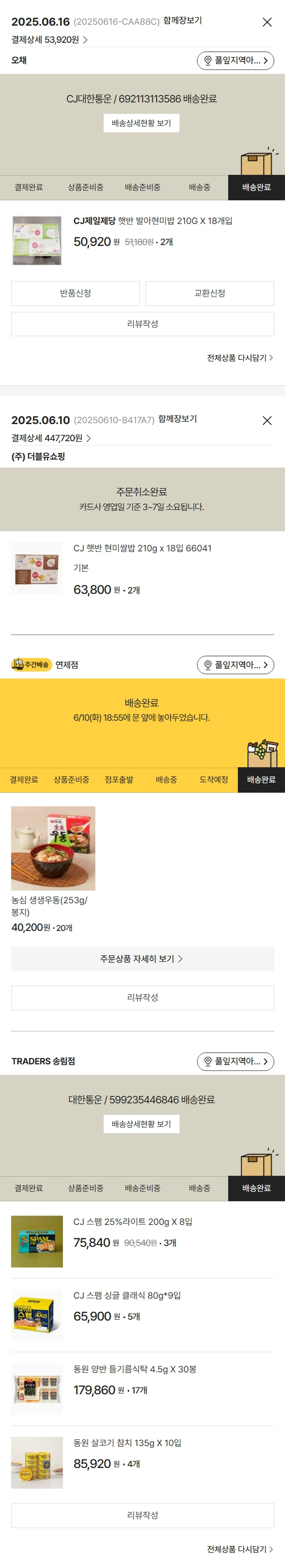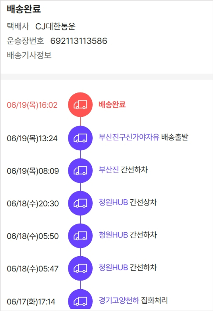 기부자님이 사용한 기부포인트 9,500원, 물품배송비 3,000원, 가격상승분 1,760원, 100원 미만 지원금 80원, 결제 수수료 11,529원, 기타 사업비는 행복나눔재단이 부담했습니다. (기부후기 발송시점에 최종 업데이트 됩니다.) 상품 주문 건 중 품절 발생하여 2025-06-16 재주문하였습니다. 실제 쇼핑몰에서 확인되는 배송현황을 캡처한 내용입니다. 실시간 자료와는 차이가 있을 수 있습니다.