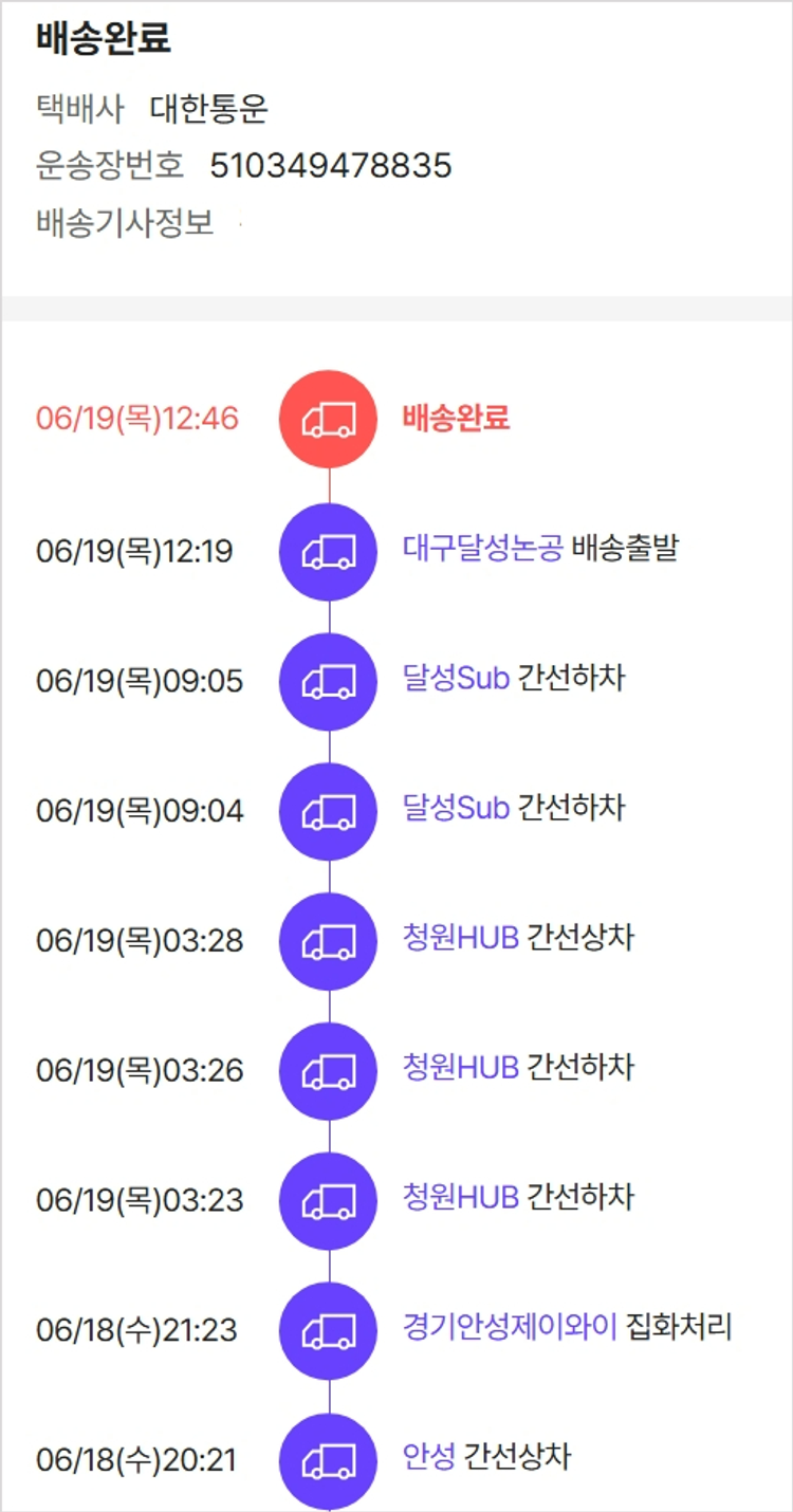 가격상승분 15,410원, 100원 미만 지원금 90원, 결제 수수료 10,795원, 기타 사업비는 행복나눔재단이 부담했습니다. (기부후기 발송시점에 최종 업데이트 됩니다.) 실제 쇼핑몰에서 확인되는 배송현황을 캡처한 내용입니다. 실시간 자료와는 차이가 있을 수 있습니다.