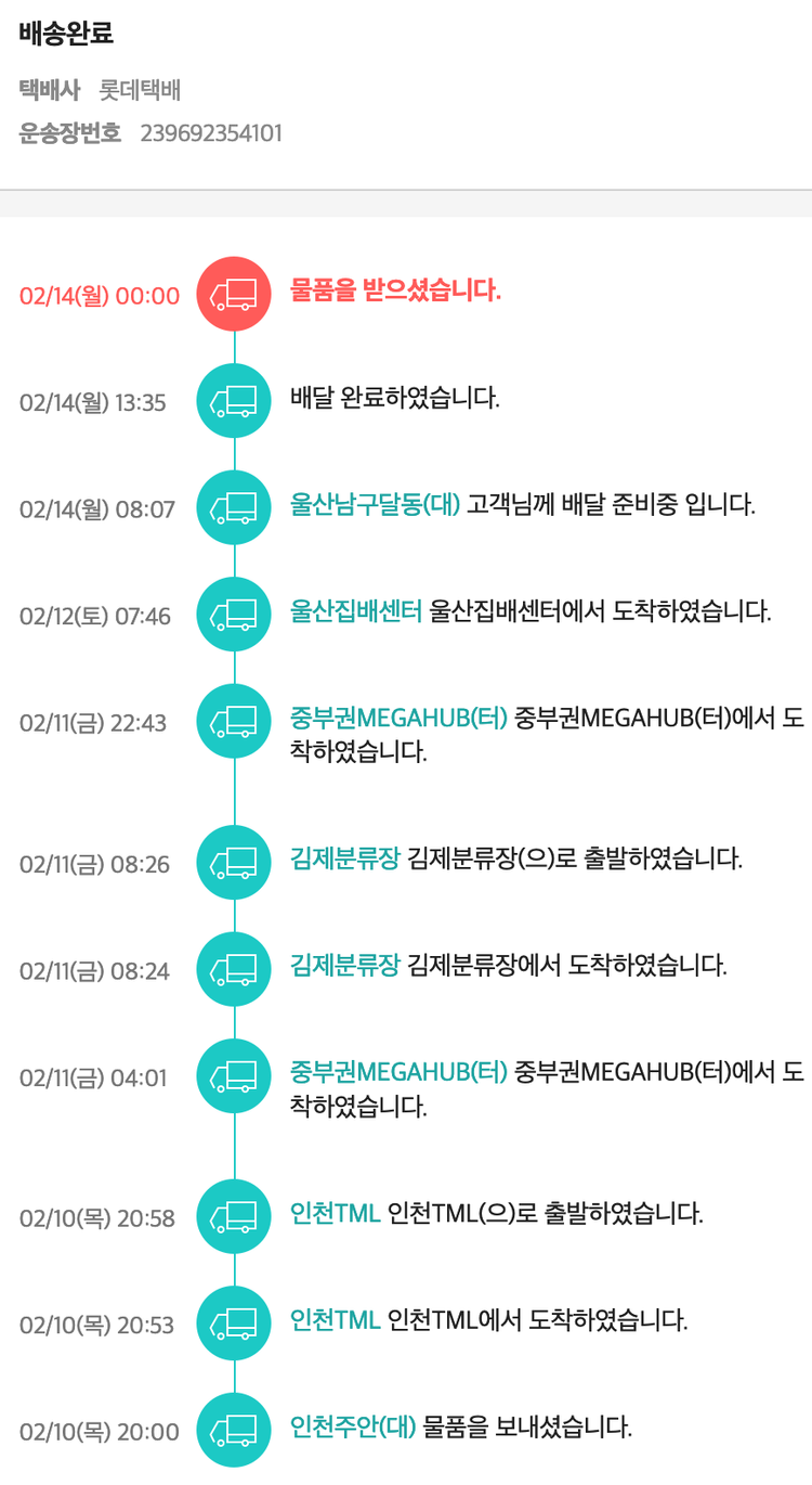 기부자님이 사용한 기부포인트 2,000원, 물품배송비 2,700원, 100원 미만 지원금 64원, 결제 수수료 9,401원, 기타 사업비는 행복나눔재단이 부담했습니다. (기부후기 발송시점에 최종 업데이트 됩니다.) 실제 쇼핑몰에서 확인되는 배송현황을 캡처한 내용입니다. 실시간 자료와는 차이가 있을 수 있습니다.