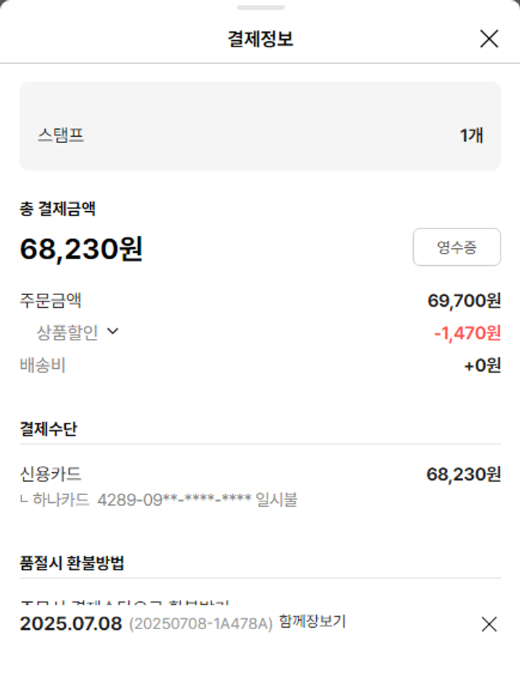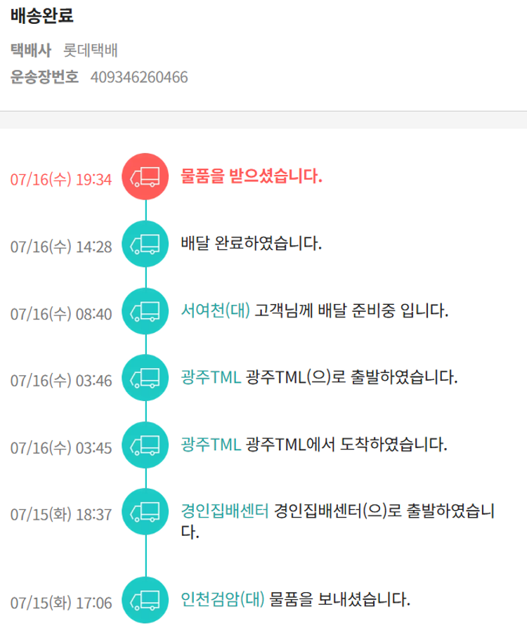 기부자님이 사용한 기부포인트 8,950원, 물품배송비 9,000원, 가격상승분 5,345원, 100원 미만 지원금 85원, 결제 수수료 9,948원, 기타 사업비는 행복나눔재단이 부담했습니다. (기부후기 발송시점에 최종 업데이트 됩니다.) 상품 주문 건 중 품절 발생하여 2025-07-14 재주문하였습니다. 실제 쇼핑몰에서 확인되는 배송현황을 캡처한 내용입니다. 실시간 자료와는 차이가 있을 수 있습니다.