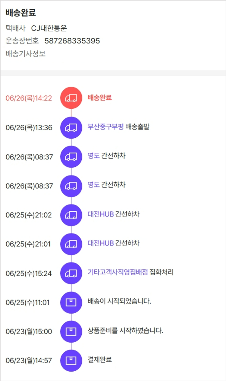 기부자님이 사용한 기부포인트 2,500원, 가격상승분 3,840원, 100원 미만 지원금 50원, 결제 수수료 8,759원, 기타 사업비는 행복나눔재단이 부담했습니다. (기부후기 발송시점에 최종 업데이트 됩니다.) 실제 쇼핑몰에서 확인되는 배송현황을 캡처한 내용입니다. 실시간 자료와는 차이가 있을 수 있습니다.