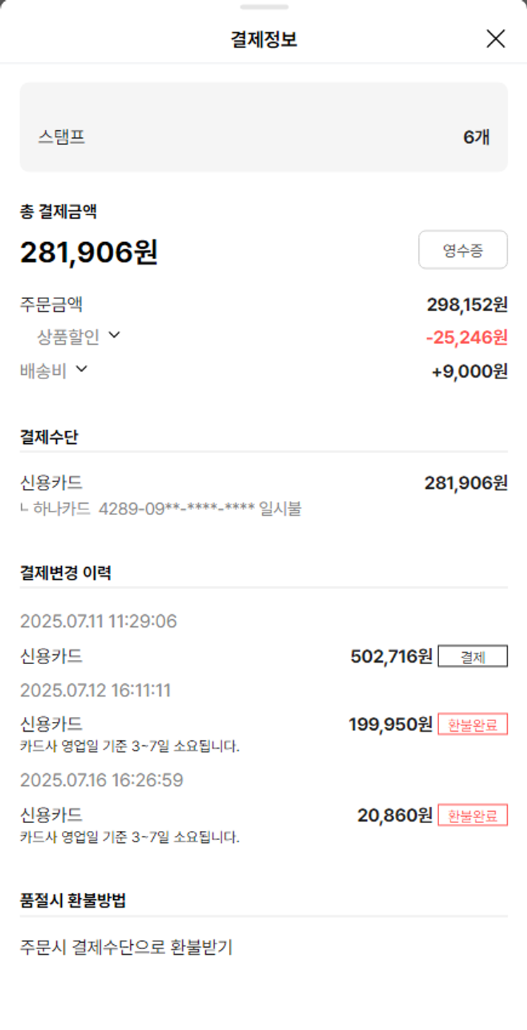 물품배송비 15,500원, 가격상승분 8,949원, 100원 미만 지원금 87원, 결제 수수료 10,584원, 기타 사업비는 행복나눔재단이 부담했습니다. (기부후기 발송시점에 최종 업데이트 됩니다.) 상품 주문 건 중 품절 발생하여 2025-07-17 재주문하였습니다. 실제 쇼핑몰에서 확인되는 배송현황을 캡처한 내용입니다. 실시간 자료와는 차이가 있을 수 있습니다.