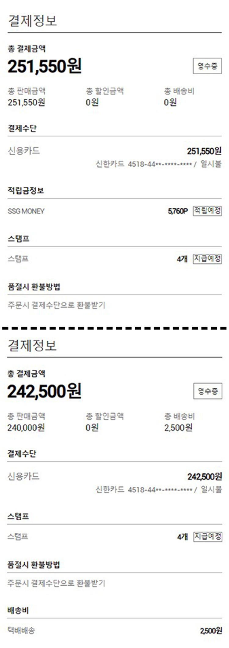 기부자님이 사용한 기부포인트 2,500원, 물품배송비 2,500원, 100원 미만 지원금 50원, 결제 수수료 10,791원, 기타 사업비는 행복나눔재단이 부담했습니다. (기부후기 발송시점에 최종 업데이트 됩니다.) 실제 쇼핑몰에서 확인되는 배송현황을 캡처한 내용입니다. 실시간 자료와는 차이가 있을 수 있습니다.