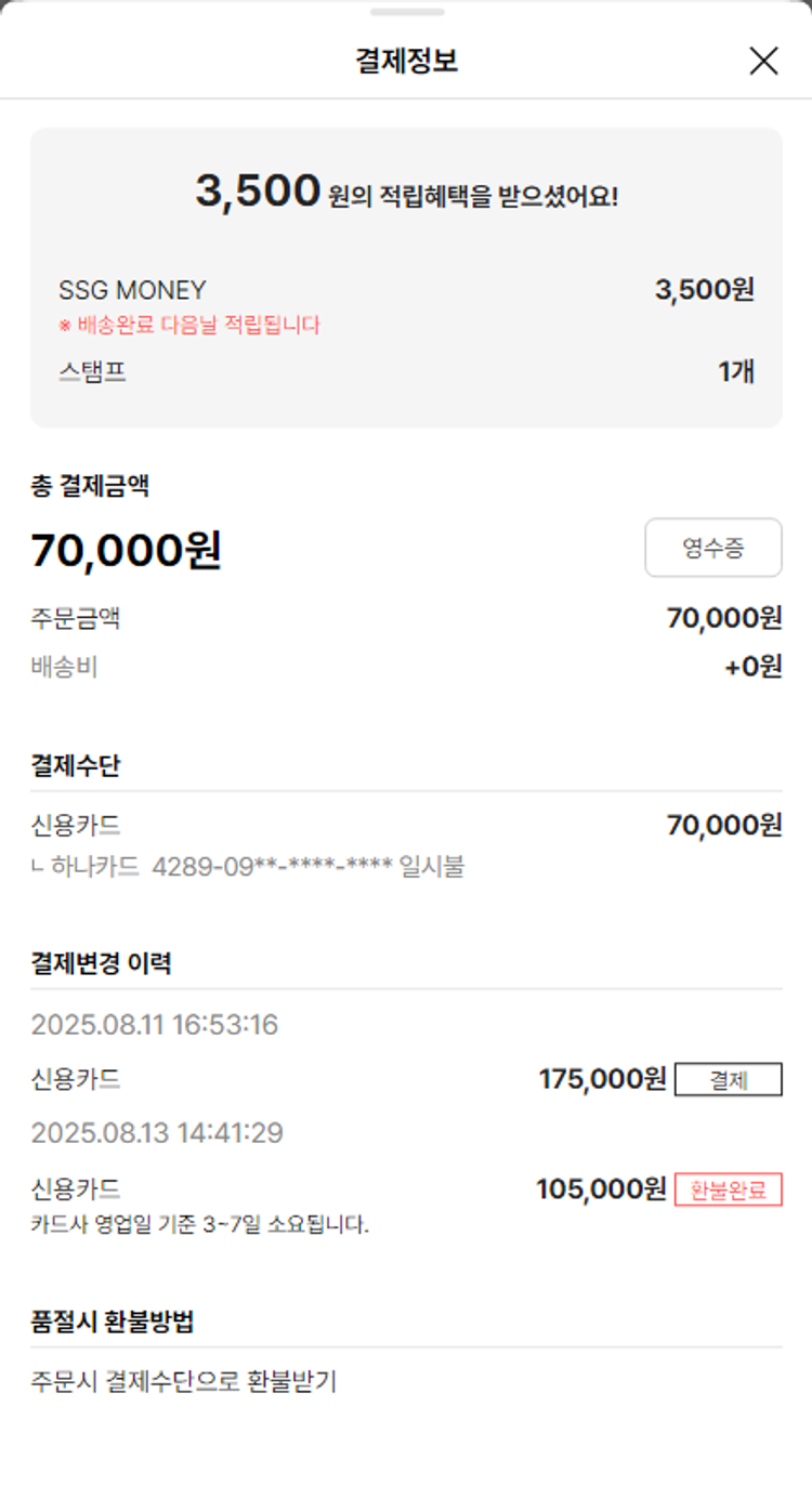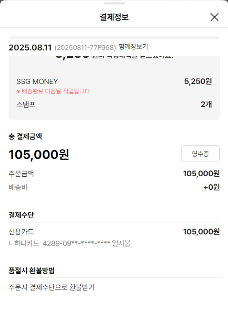 기부자님이 사용한 기부포인트 5,100원, 물품배송비 3,000원, 가격상승분 5,550원, 100원 미만 지원금 70원, 결제 수수료 14,132원, 기타 사업비는 행복나눔재단이 부담했습니다. (기부후기 발송시점에 최종 업데이트 됩니다.) 상품 주문 건 중 품절 발생하여 2025-08-13 재주문하였습니다. 실제 쇼핑몰에서 확인되는 배송현황을 캡처한 내용입니다. 실시간 자료와는 차이가 있을 수 있습니다.