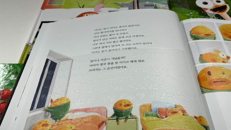 이 책들을 점자 라벨도서로 제작해 부모님께 전달할 예정입니다. 그림책에 투명한 스티커 형태의 점자 라벨을 붙여서, 글자와 그림을 함께 볼 수 있도록 만든 책인데요. 저시력 아이들은 그림을 직접 볼 수 있고, 점자를 배우는 아이들도 손으로 더듬어 읽을 수 있어요. 무엇보다 부모님이나 형제, 선생님과 함께 읽을 수 있는 구조라서 아이와 대화의 기회를 넓혀줄 수 있어요.