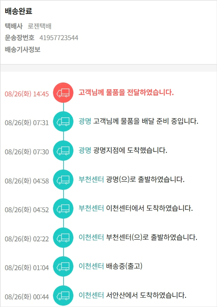 기부자님이 사용한 기부포인트 11,000원, 물품배송비 6,000원, 가격상승분 197원, 100원 미만 지원금 28원, 결제 수수료 7,099원, 기타 사업비는 행복나눔재단이 부담했습니다. (기부후기 발송시점에 최종 업데이트 됩니다.) 상품 주문 건 중 품절 발생하여 2025-08-22 재주문하였습니다. 실제 쇼핑몰에서 확인되는 배송현황을 캡처한 내용입니다. 실시간 자료와는 차이가 있을 수 있습니다.