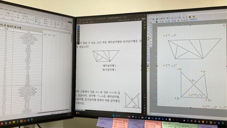 그동안 국어·영어 점자 문제집은 전문가들이 분업화된 방식으로 제작해왔습니다. 하지만 수학 촉각자료는 도형, 그래프, 표는 단순한 텍스트가 아니기 때문에, 수작업으로 도형을 직접 디자인하고, 천공 방식으로 종이를 뚫고, 손끝으로 만져가며 수정해야 합니다. 자동화할 수도 없고, 분업화도 어렵습니다.
