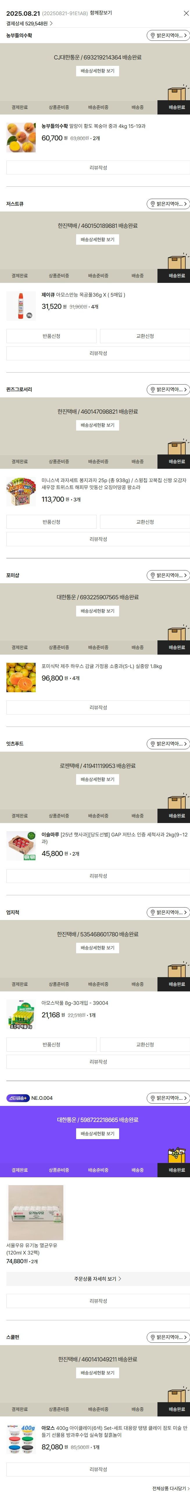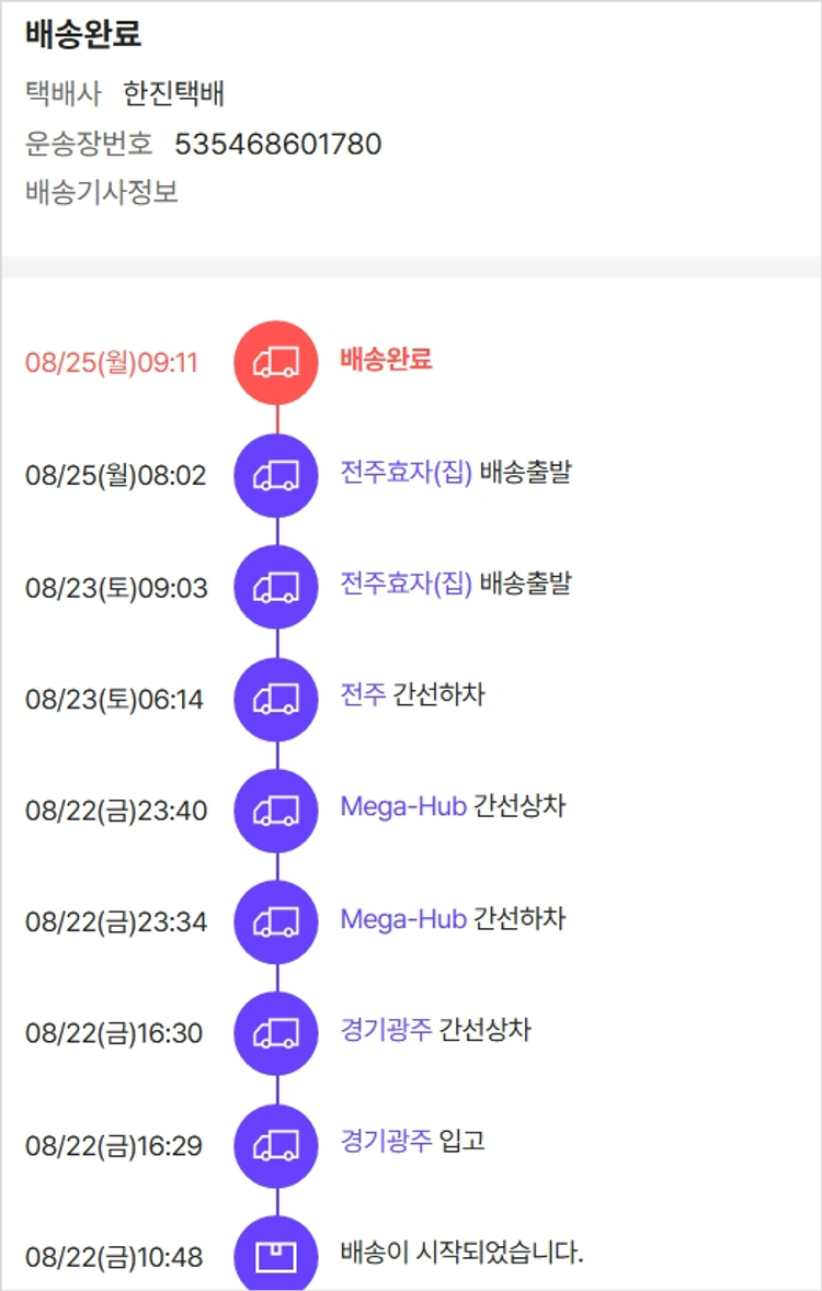 기부자님이 사용한 기부포인트 6,550원, 물품배송비 2,900원, 가격상승분 13,460원, 100원 미만 지원금 88원, 결제 수수료 10,865원, 기타 사업비는 행복나눔재단이 부담했습니다. (기부후기 발송시점에 최종 업데이트 됩니다.) 실제 쇼핑몰에서 확인되는 배송현황을 캡처한 내용입니다. 실시간 자료와는 차이가 있을 수 있습니다.