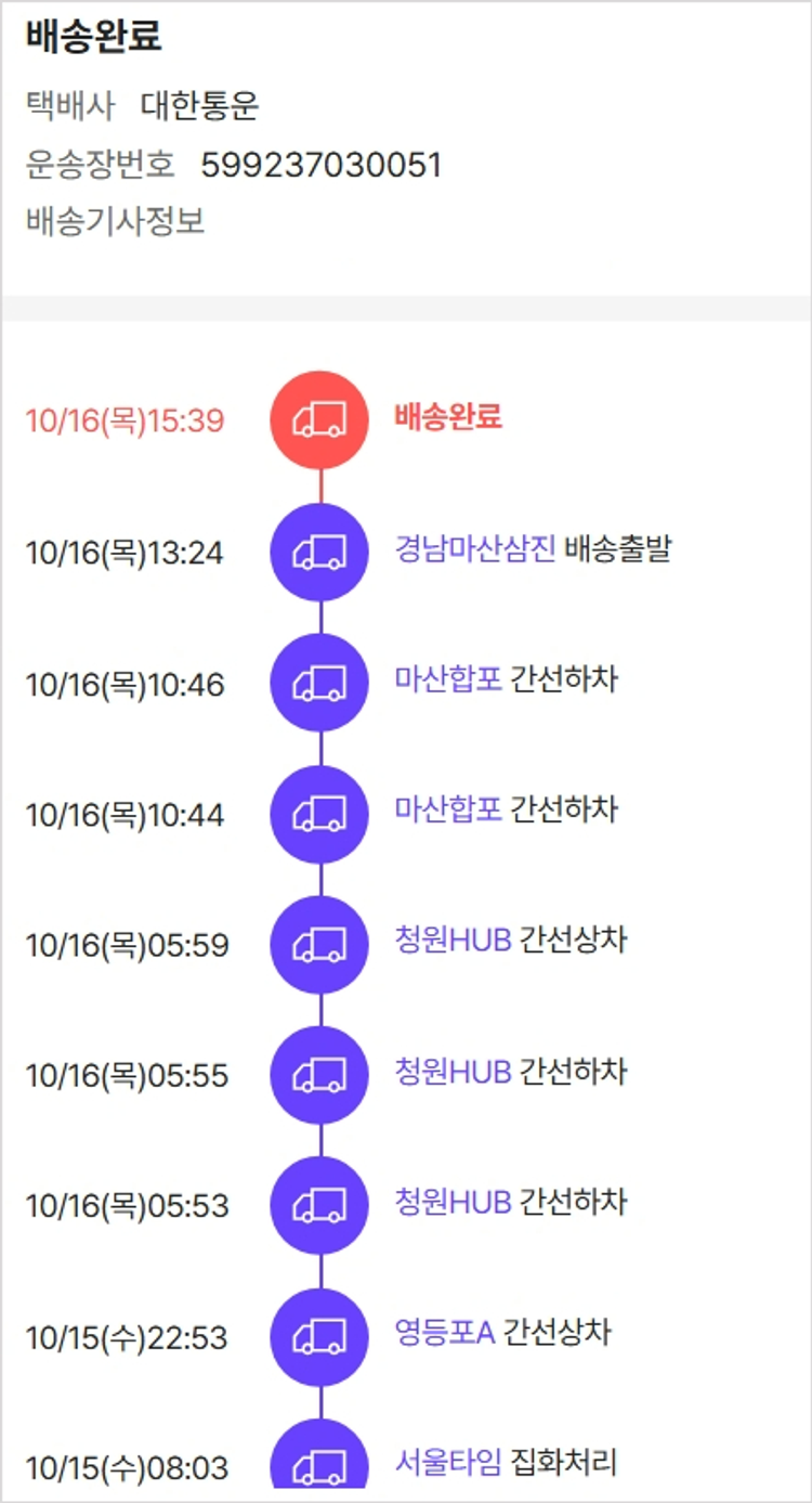 기부자님이 사용한 기부포인트 13,200원, 물품배송비 6,000원, 가격상승분 7,950원, 100원 미만 지원금 20원, 결제 수수료 10,839원, 기타 사업비는 행복나눔재단이 부담했습니다. (기부후기 발송시점에 최종 업데이트 됩니다.) 상품 주문 건 중 품절 발생하여 2025-10-14 재주문하였습니다. 기존 장바구니의 교재 품절로 선생님과 논의하여 보드게임으로 재주문하였습니다. 실제 쇼핑몰에서 확인되는 배송현황을 캡처한 내용입니다. 실시간 자료와는 차이가 있을 수 있습니다.