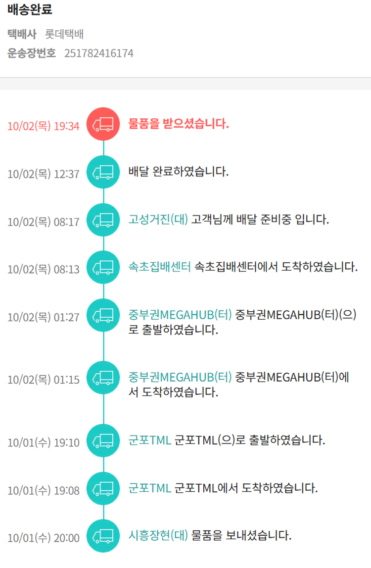 기부자님이 사용한 기부포인트 11,000원, 가격상승분 13,150원, 100원 미만 지원금 80원, 결제 수수료 11,822원, 기타 사업비는 행복나눔재단이 부담했습니다. (기부후기 발송시점에 최종 업데이트 됩니다.) 상품 주문 건 중 품절 발생하여 2025-09-26 재주문하였습니다. 실제 쇼핑몰에서 확인되는 배송현황을 캡처한 내용입니다. 실시간 자료와는 차이가 있을 수 있습니다.