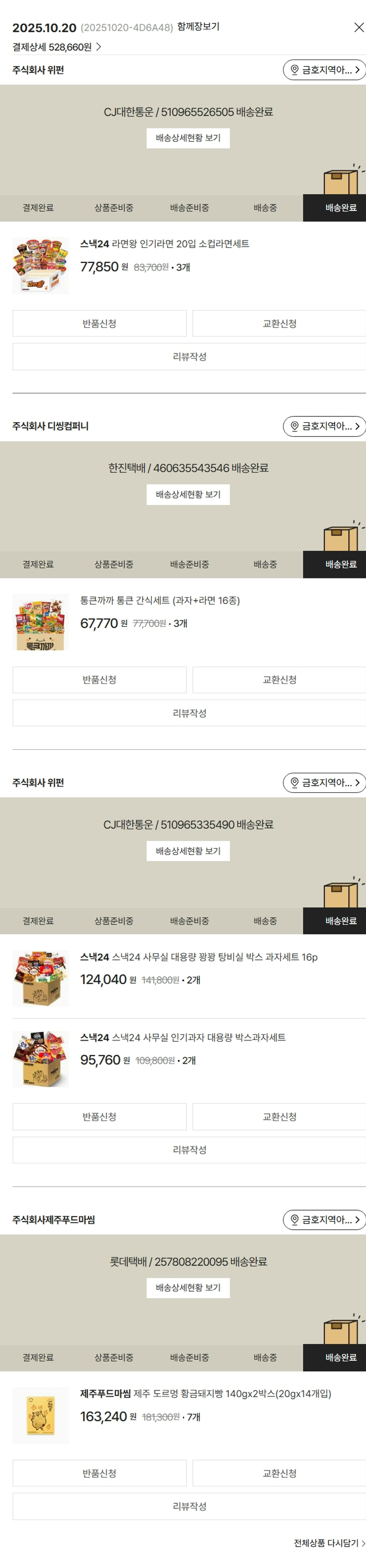 스낵24 사무실 인기과자 대용량 박스과자세트