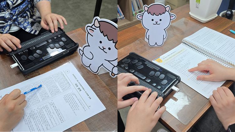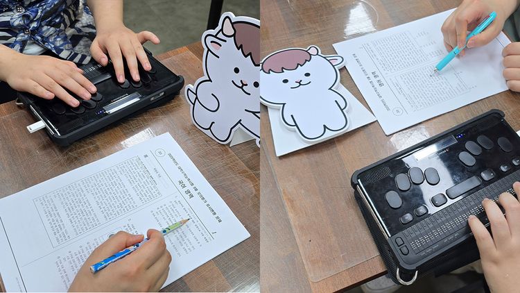 “점자 문제집을 신청하고 완성본을 받기까지 걸리는 기간은 평균 5.1개월이라고 해요. 12월에 신청해도 5월에 받아보는 셈이니, 학기가 시작하기 전에 신청해도 중간고사가 끝나고 나서야 도착하는 거죠. 그러다 보니 시각장애 학생들은 문제집을 보며 예습은 커녕 진도에 맞춰 공부하기도 어려워요.”