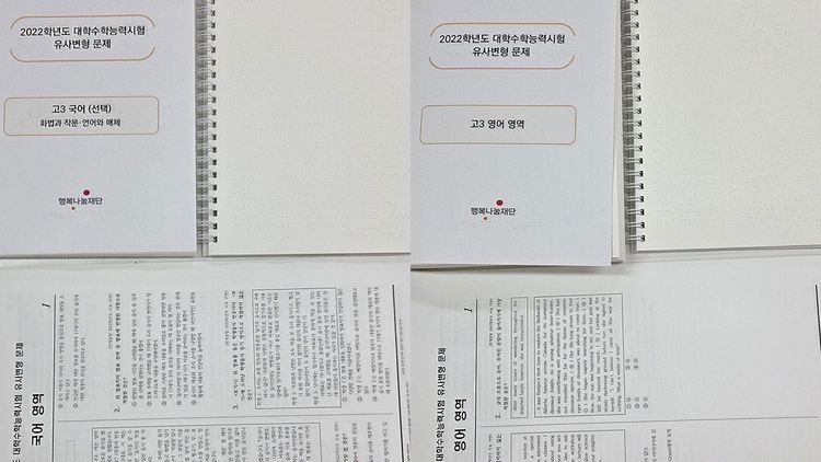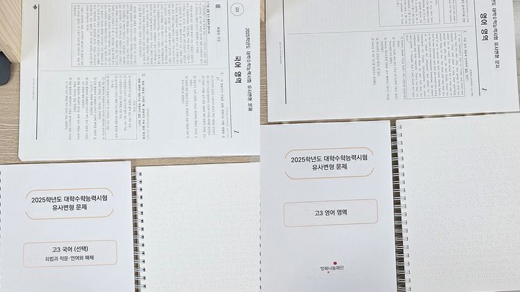 보통 새학기가 되면 서점에서 문제집들을 미리 사보지만, 시각장애 학생이 마주하는 상황은 다릅니다. 대체자료* 제작 신청을 하면 학기가 시작하고 몇 개월이 지나서야 점자로 된 문제집을 받아봅니다.