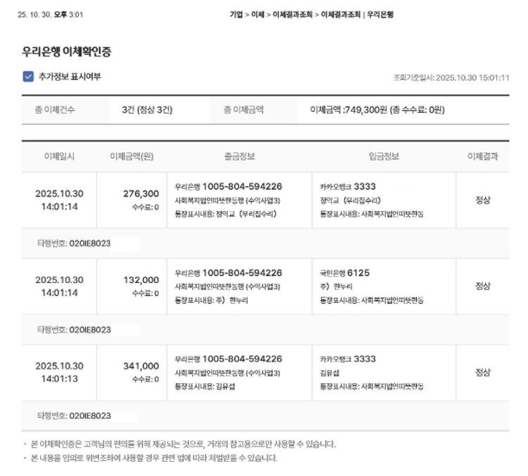 - 기타 발생하는 모든 비용은 행복나눔재단이 부담해요. (배송비, 수수료 등)