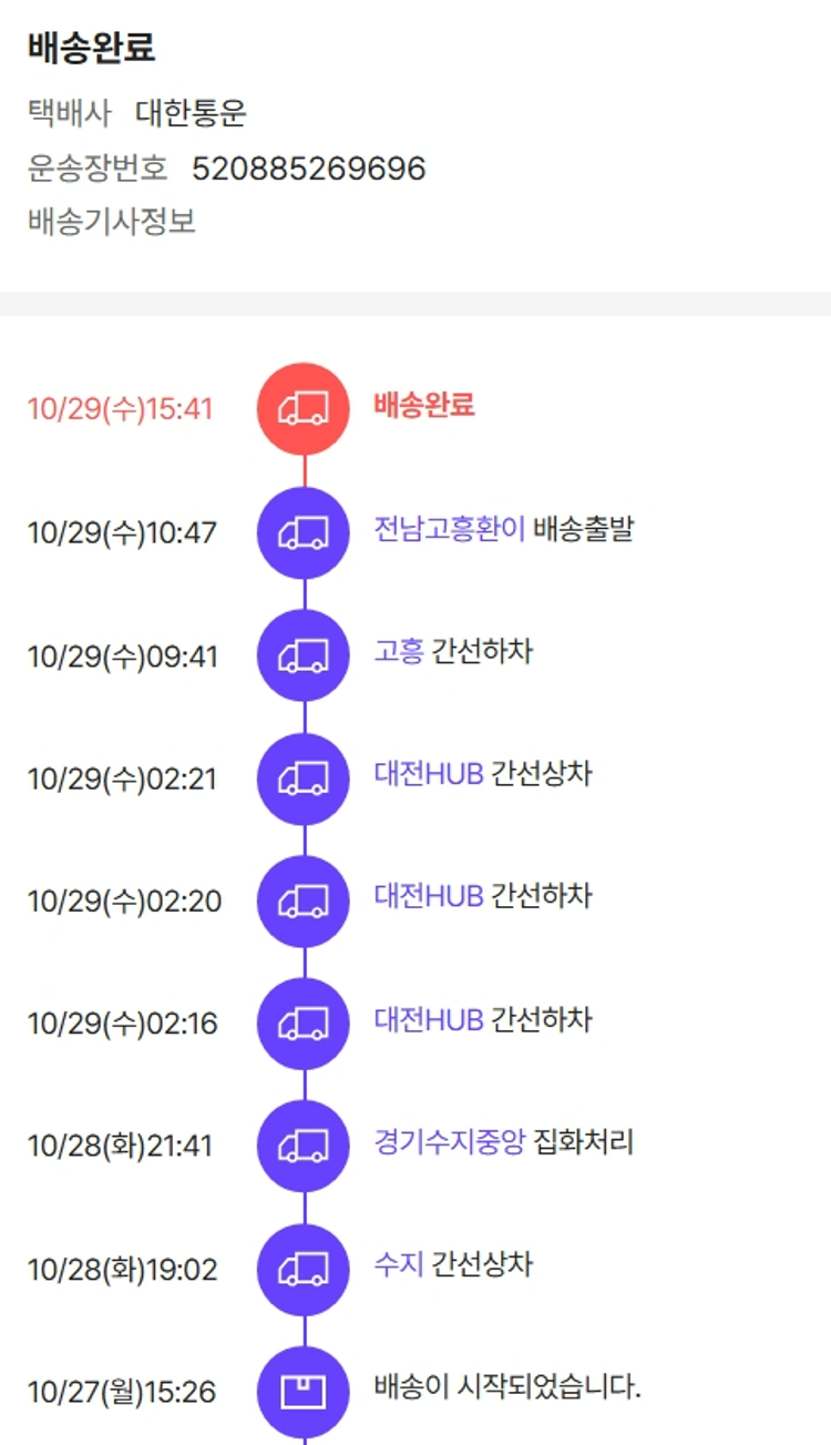 가격상승분 7,470원, 100원 미만 지원금 50원, 기타 사업비는 행복나눔재단이 부담했습니다. (기부후기 발송시점에 최종 업데이트 됩니다.) 실제 쇼핑몰에서 확인되는 배송현황을 캡처한 내용입니다. 실시간 자료와는 차이가 있을 수 있습니다.