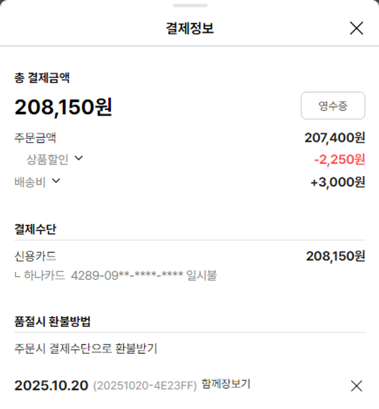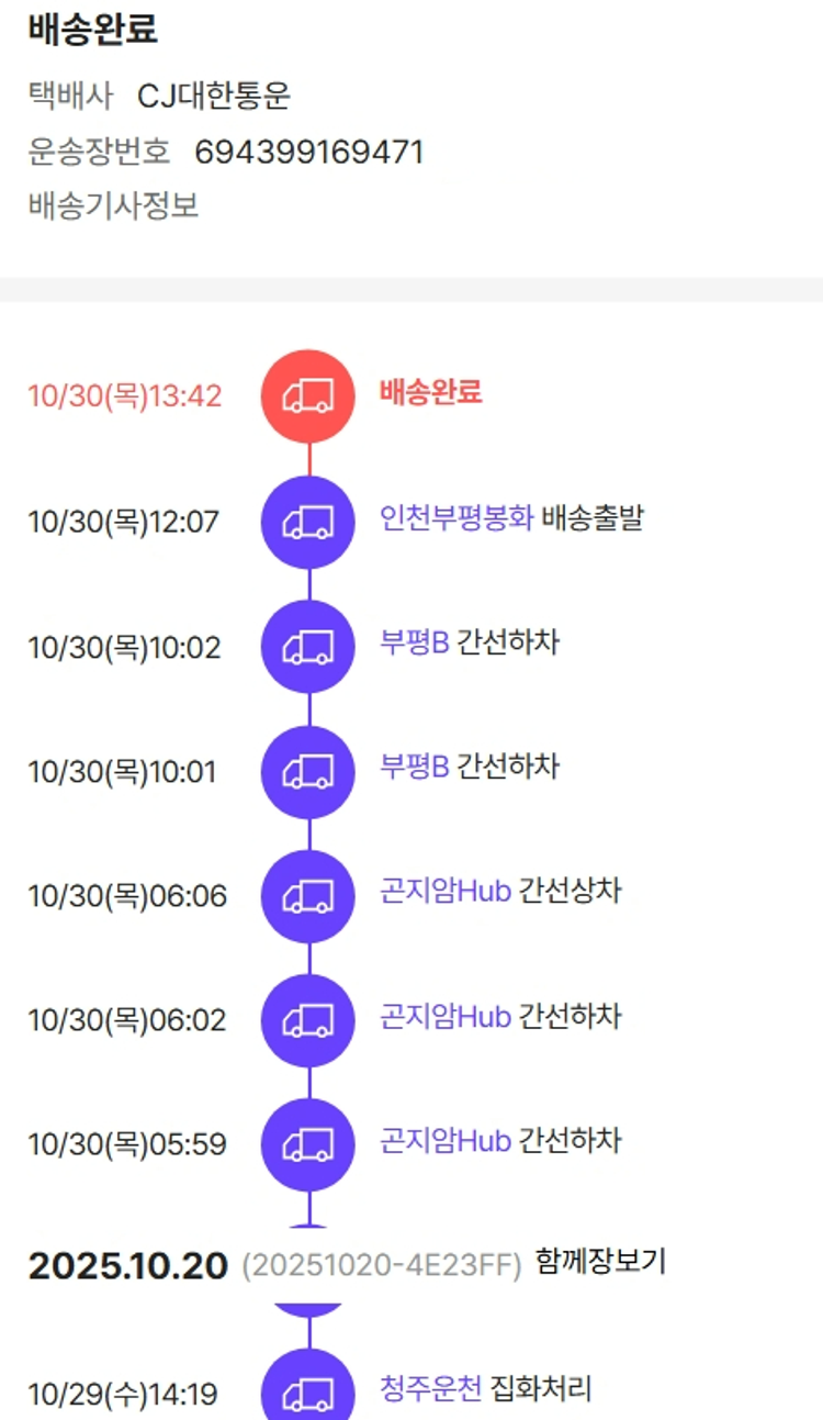 물품배송비 9,000원, 가격상승분 9,326원, 100원 미만 지원금 94원, 기타 사업비는 행복나눔재단이 부담했습니다. (기부후기 발송시점에 최종 업데이트 됩니다.) 상품 주문 건 중 품절 발생하여 2025-10-29 재주문하였습니다. 실제 쇼핑몰에서 확인되는 배송현황을 캡처한 내용입니다. 실시간 자료와는 차이가 있을 수 있습니다.