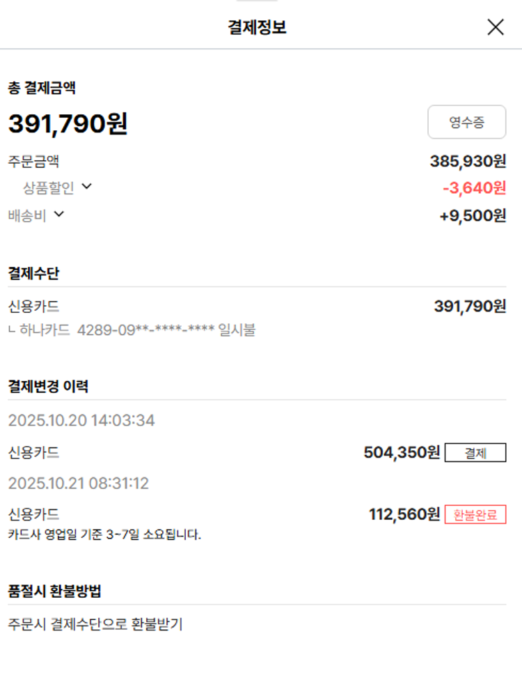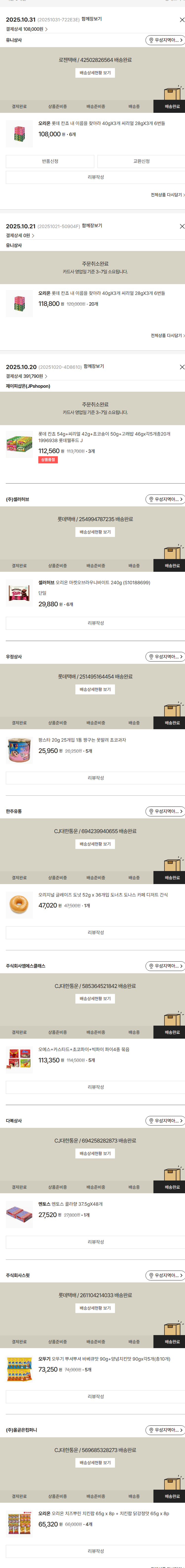 물품배송비 9,500원, 가격상승분 640원, 100원 미만 지원금 50원, 결제 수수료 10,710원, 기타 사업비는 행복나눔재단이 부담했습니다. (기부후기 발송시점에 최종 업데이트 됩니다.) 상품 주문 건 중 품절 발생하여 2025-10-31 재주문하였습니다. 실제 쇼핑몰에서 확인되는 배송현황을 캡처한 내용입니다. 실시간 자료와는 차이가 있을 수 있습니다.