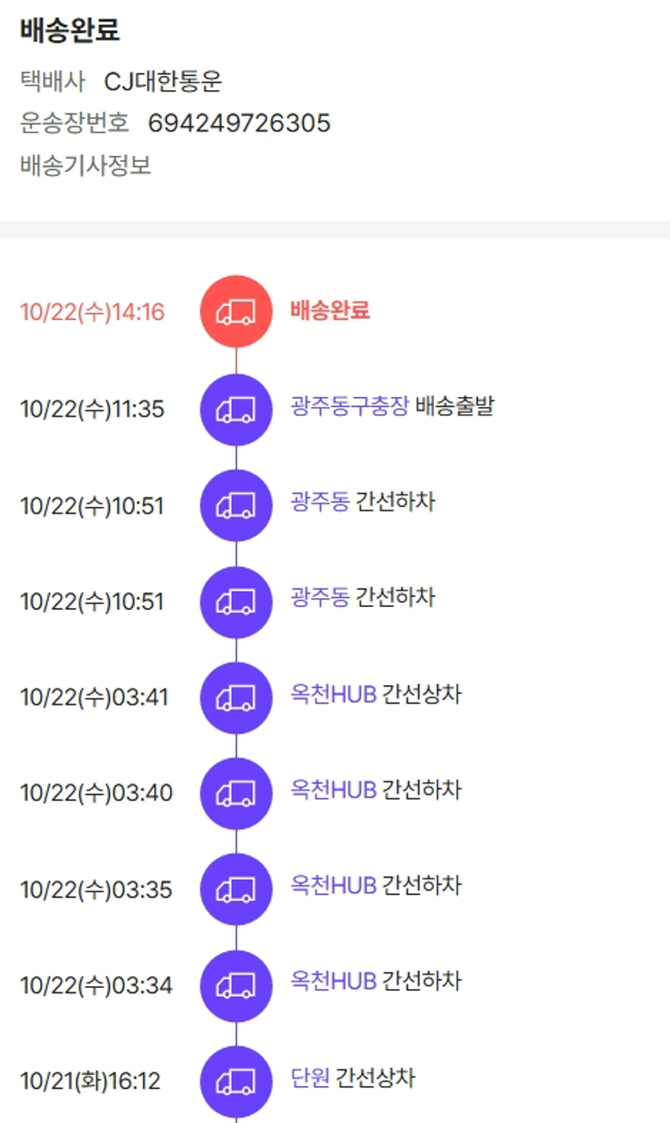 기부자님이 사용한 기부포인트 500원, 가격상승분 15,092원, 100원 미만 지원금 48원, 결제 수수료 10,753원, 기타 사업비는 행복나눔재단이 부담했습니다. (기부후기 발송시점에 최종 업데이트 됩니다.) 실제 쇼핑몰에서 확인되는 배송현황을 캡처한 내용입니다. 실시간 자료와는 차이가 있을 수 있습니다.