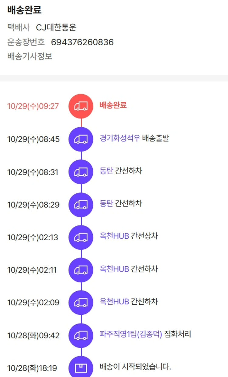 기부자님이 사용한 기부포인트 12,600원, 가격상승분 6,064원, 100원 미만 지원금 56원, 결제 수수료 10,567원, 기타 사업비는 행복나눔재단이 부담했습니다. (기부후기 발송시점에 최종 업데이트 됩니다.) 실제 쇼핑몰에서 확인되는 배송현황을 캡처한 내용입니다. 실시간 자료와는 차이가 있을 수 있습니다.