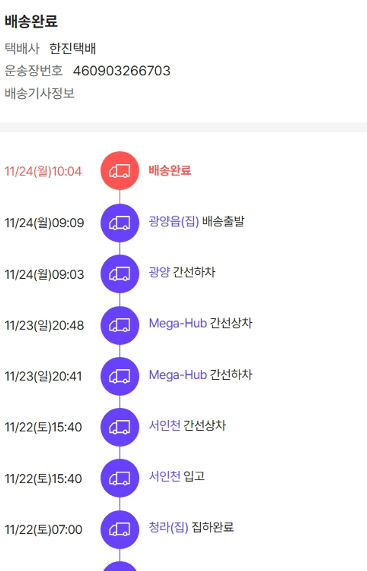 기부자님이 사용한 기부포인트 21,100원, 가격상승분 10,866원, 100원 미만 지원금 54원, 결제 수수료 10,751원, 기타 사업비는 행복나눔재단이 부담했습니다. (기부후기 발송시점에 최종 업데이트 됩니다.) 실제 쇼핑몰에서 확인되는 배송현황을 캡처한 내용입니다. 실시간 자료와는 차이가 있을 수 있습니다.