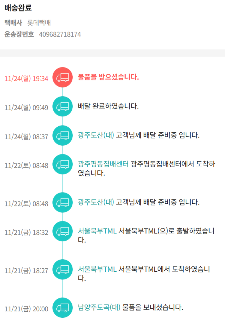 기부자님이 사용한 기부포인트 3,600원, 물품배송비 3,500원, 가격상승분 5,128원, 100원 미만 지원금 12원, 결제 수수료 10,958원, 기타 사업비는 행복나눔재단이 부담했습니다. (기부후기 발송시점에 최종 업데이트 됩니다.) 실제 쇼핑몰에서 확인되는 배송현황을 캡처한 내용입니다. 실시간 자료와는 차이가 있을 수 있습니다.