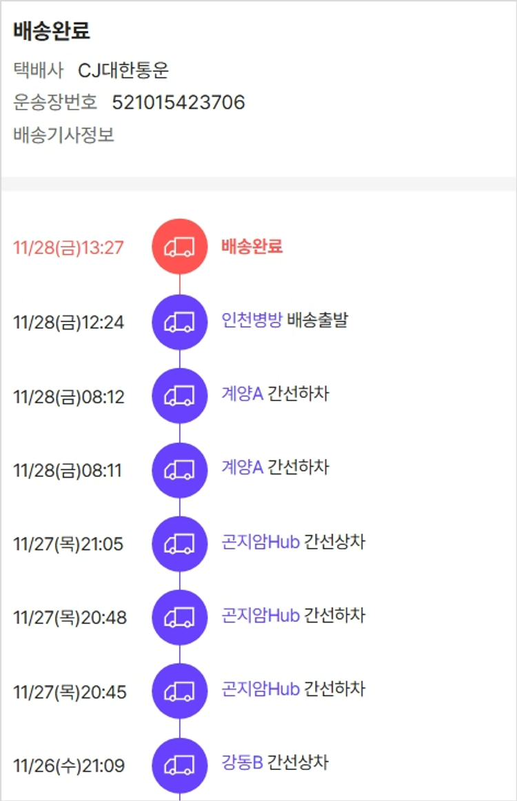 기부자님이 사용한 기부포인트 16,900원, 물품배송비 3,000원, 100원 미만 지원금 94원, 결제 수수료 10,082원, 기타 사업비는 행복나눔재단이 부담했습니다. (기부후기 발송시점에 최종 업데이트 됩니다.) 실제 쇼핑몰에서 확인되는 배송현황을 캡처한 내용입니다. 실시간 자료와는 차이가 있을 수 있습니다.