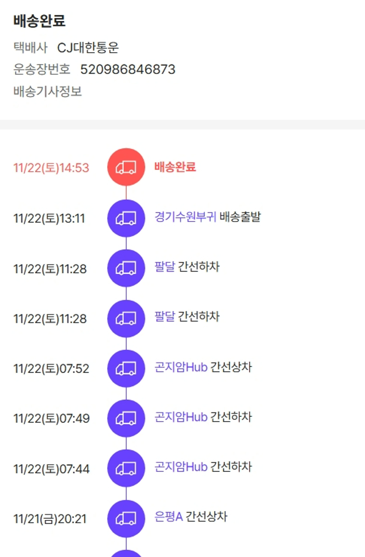 가격상승분 6,372원, 100원 미만 지원금 60원, 기타 사업비는 행복나눔재단이 부담했습니다. (기부후기 발송시점에 최종 업데이트 됩니다.) 실제 쇼핑몰에서 확인되는 배송현황을 캡처한 내용입니다. 실시간 자료와는 차이가 있을 수 있습니다.