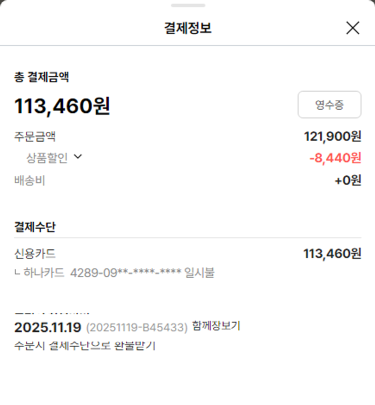 가격상승분 7,479원, 100원 미만 지원금 30원, 결제 수수료 28,890원, 기타 사업비는 행복나눔재단이 부담했습니다. (기부후기 발송시점에 최종 업데이트 됩니다.) 상품 주문 건 중 품절 발생하여 2025-11-26 재주문하였습니다. 실제 쇼핑몰에서 확인되는 배송현황을 캡처한 내용입니다. 실시간 자료와는 차이가 있을 수 있습니다.