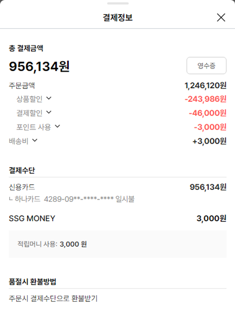 가격상승분 1,425원, 100원 미만 지원금 9원, SSG 머니 3,000포인트, 기타 사업비는 행복나눔재단이 부담했습니다. (기부후기 발송시점에 최종 업데이트 됩니다.) 실제 쇼핑몰에서 확인되는 배송현황을 캡처한 내용입니다. 실시간 자료와는 차이가 있을 수 있습니다.