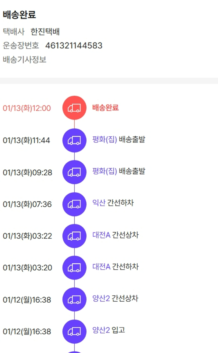 물품배송비 3,000원, 가격상승분 2,470원, 100원 미만 지원금 90원, 기타 사업비는 행복나눔재단이 부담했습니다. (기부후기 발송시점에 최종 업데이트 됩니다.) 상품 주문 건 중 품절 발생하여 2026-01-09 재주문하였습니다. 실제 쇼핑몰에서 확인되는 배송현황을 캡처한 내용입니다. 실시간 자료와는 차이가 있을 수 있습니다.