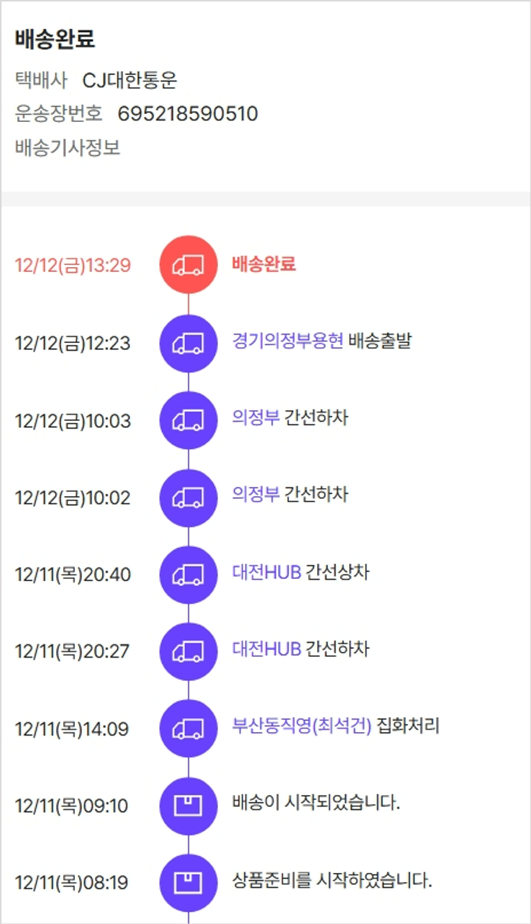 기부자님이 사용한 기부포인트 4,250원, 물품배송비 3,000원, 가격상승분 5,450원, 결제 수수료 11,006원, 기타 사업비는 행복나눔재단이 부담했습니다. (기부후기 발송시점에 최종 업데이트 됩니다.) 실제 쇼핑몰에서 확인되는 배송현황을 캡처한 내용입니다. 실시간 자료와는 차이가 있을 수 있습니다.