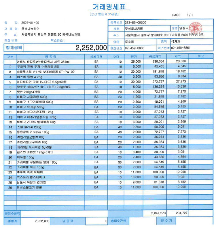 * 배송비 등 추가비용 발생시 행복나눔재단 이 부담합니다.