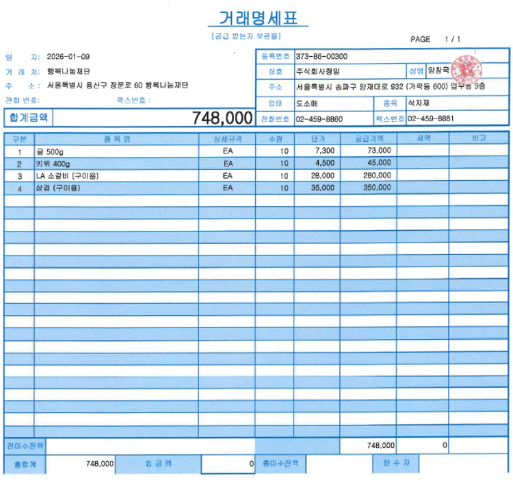- 대표사진 (수령자 손 + 물품 + 기부자명단)