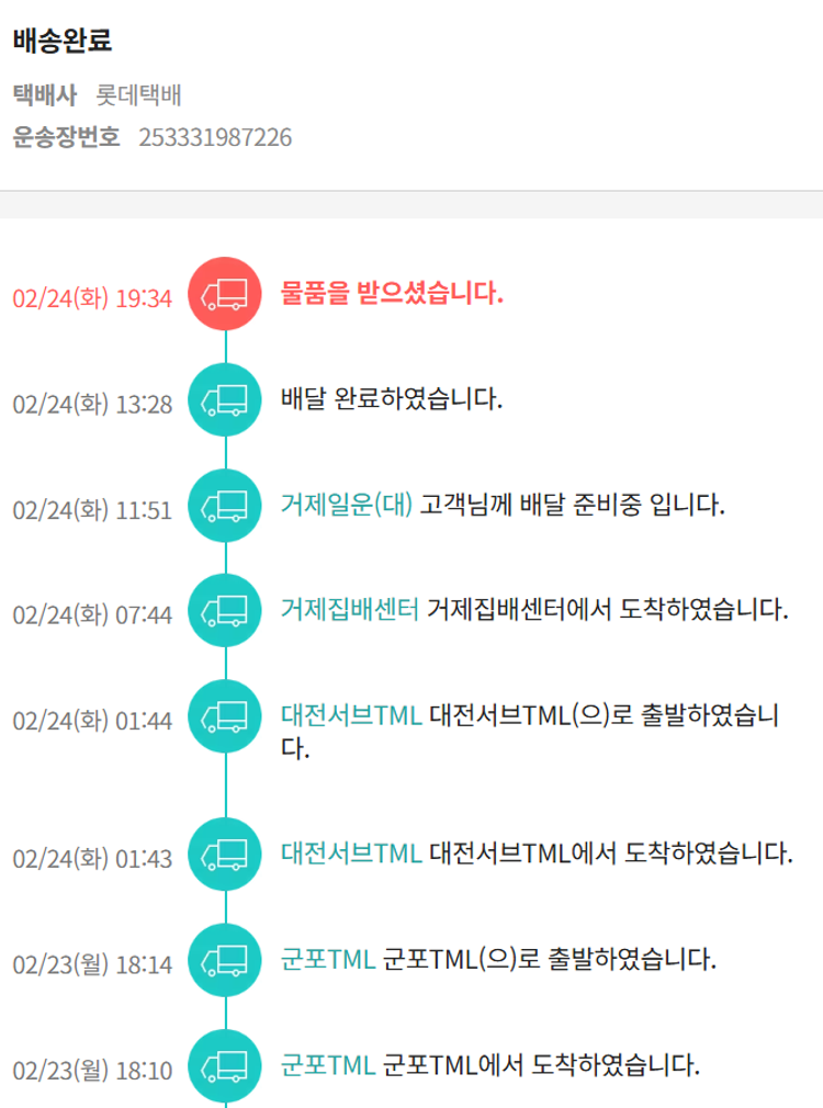 기부자님이 사용한 기부포인트 31,000원, 가격상승분 8,620원, 100원 미만 지원금 40원, 결제 수수료 10,602원, 기타 사업비는 행복나눔재단이 부담했습니다. (기부후기 발송시점에 최종 업데이트 됩니다.) 실제 쇼핑몰에서 확인되는 배송현황을 캡처한 내용입니다. 실시간 자료와는 차이가 있을 수 있습니다.