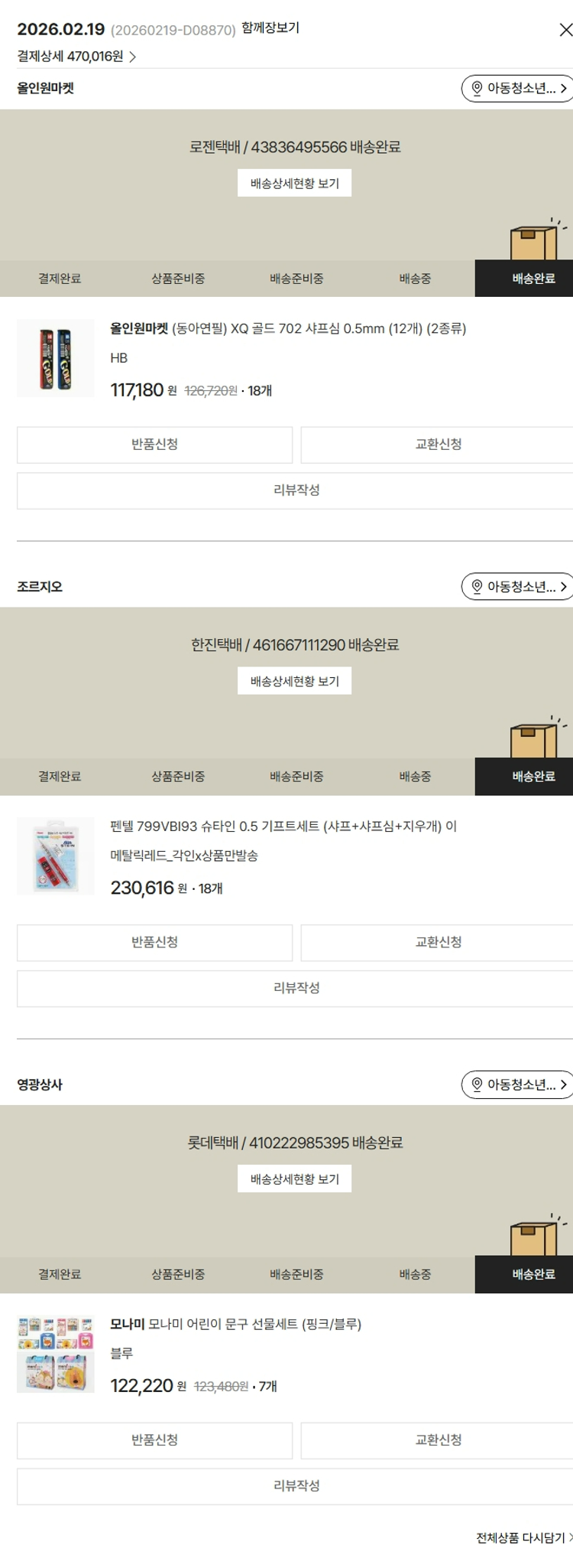 기부자님이 사용한 기부포인트 18,000원, 가격상승분 19,850원, 100원 미만 지원금 66원, 결제 수수료 9,855원, 기타 사업비는 행복나눔재단이 부담했습니다. (기부후기 발송시점에 최종 업데이트 됩니다.) 실제 쇼핑몰에서 확인되는 배송현황을 캡처한 내용입니다. 실시간 자료와는 차이가 있을 수 있습니다.