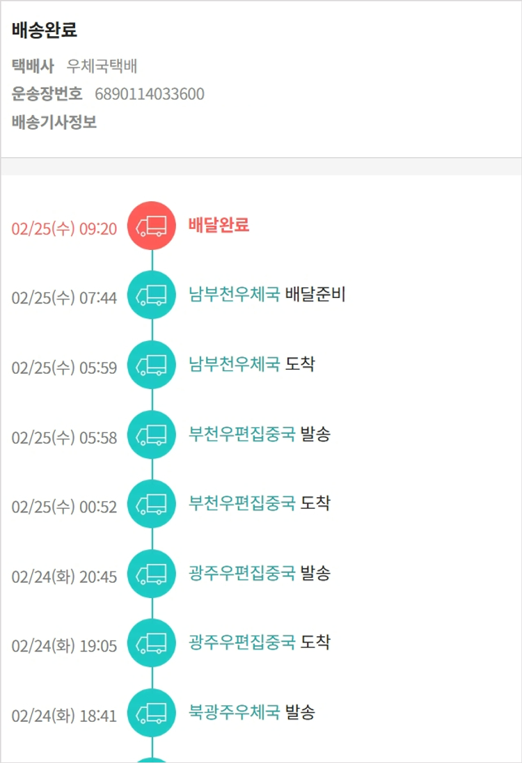 기부자님이 사용한 기부포인트 5,500원, 물품배송비 3,500원, 가격상승분 13,220원, 100원 미만 지원금 10원, 결제 수수료 10,855원, 기타 사업비는 행복나눔재단이 부담했습니다. (기부후기 발송시점에 최종 업데이트 됩니다.) 실제 쇼핑몰에서 확인되는 배송현황을 캡처한 내용입니다. 실시간 자료와는 차이가 있을 수 있습니다.
