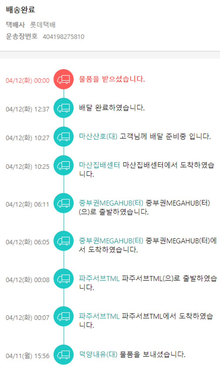 기부자님이 사용한 기부포인트 2,100원, 가격상승분 12,980원, 100원 미만 지원금 40원, 결제 수수료 12,492원, 기타 사업비는 행복나눔재단이 부담했습니다. (기부후기 발송시점에 최종 업데이트 됩니다.) 실제 쇼핑몰에서 확인되는 배송현황을 캡처한 내용입니다. 실시간 자료와는 차이가 있을 수 있습니다.