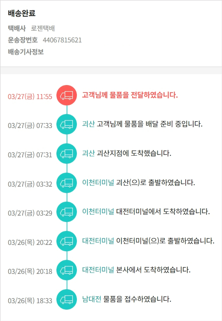 기부자님이 사용한 기부포인트 5,000원, 가격상승분 1,710원, 100원 미만 지원금 40원, 결제 수수료 10,025원, 기타 사업비는 행복나눔재단이 부담했습니다. (기부후기 발송시점에 최종 업데이트 됩니다.) 실제 쇼핑몰에서 확인되는 배송현황을 캡처한 내용입니다. 실시간 자료와는 차이가 있을 수 있습니다.