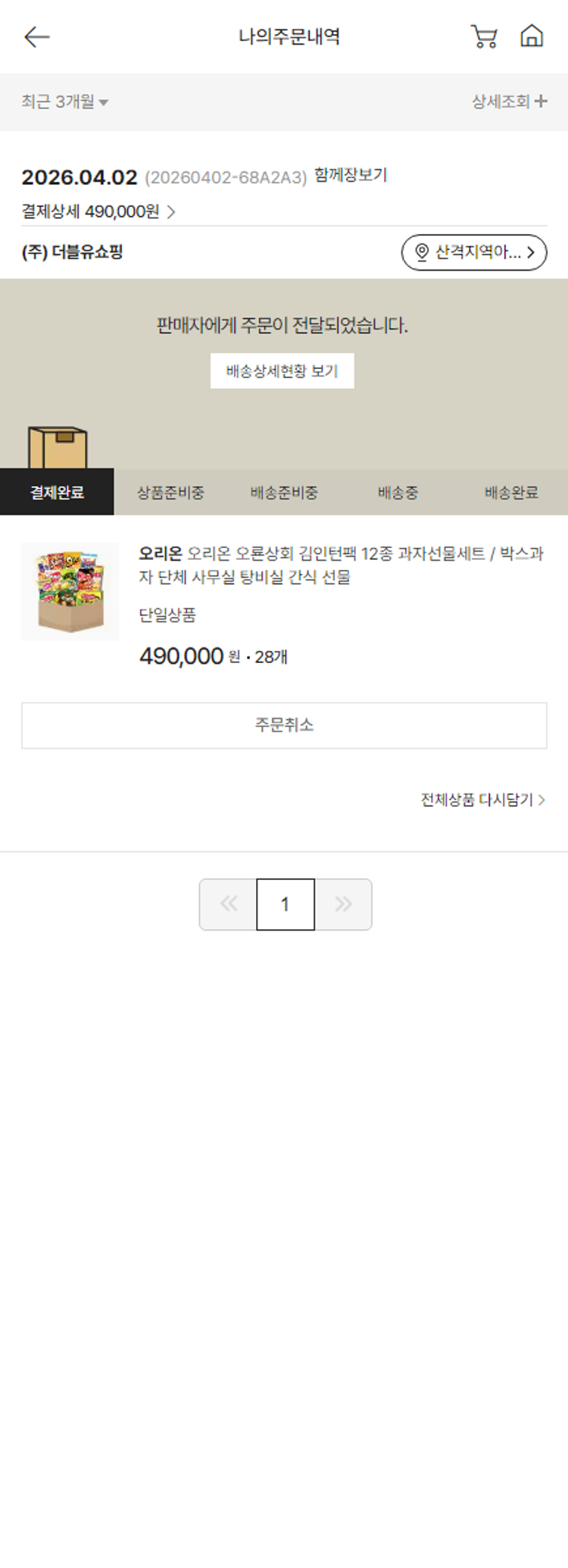 기부자님이 사용한 기부포인트 4,000원, 결제 수수료 10,740원, 기타 사업비는 행복나눔재단이 부담했습니다. (기부후기 발송시점에 최종 업데이트 됩니다.) 실제 쇼핑몰에서 확인되는 배송현황을 캡처한 내용입니다. 실시간 자료와는 차이가 있을 수 있습니다.