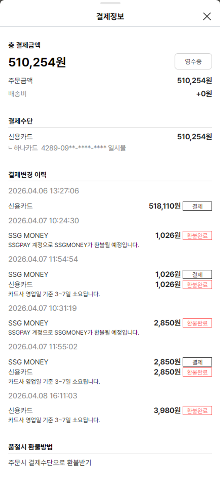 가격상승분 13,314원, 100원 미만 지원금 70원, 결제 수수료 10,913원, 기타 사업비는 행복나눔재단이 부담했습니다. (기부후기 발송시점에 최종 업데이트 됩니다.) 물품 중량 환불로 인해 차액 발생하여 2026-04-07 추가 주문하였습니다. 실제 쇼핑몰에서 확인되는 배송현황을 캡처한 내용입니다. 실시간 자료와는 차이가 있을 수 있습니다.