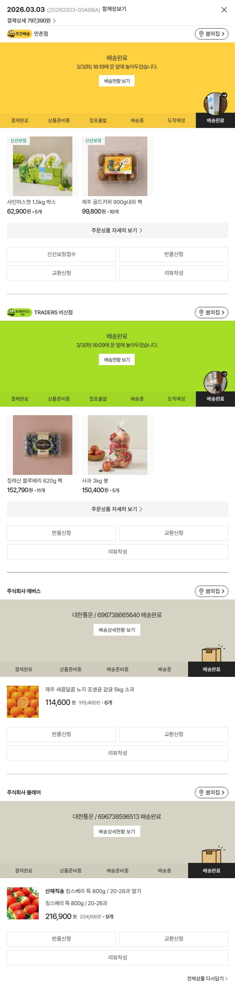 가격상승분 450원, 100원 미만 지원금 40원, 결제 수수료 17,093원, 기타 사업비는 행복나눔재단이 부담했습니다. (기부후기 발송시점에 최종 업데이트 됩니다.) 실제 쇼핑몰에서 확인되는 배송현황을 캡처한 내용입니다. 실시간 자료와는 차이가 있을 수 있습니다.