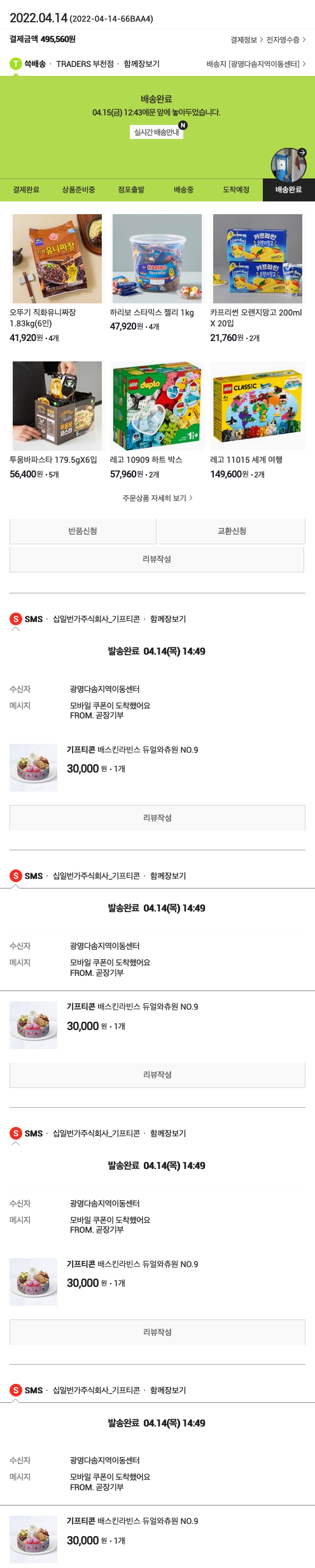 기부자님이 사용한 기부포인트 2,700원, 100원 미만 지원금 60원, 결제 수수료 9,248원, 기타 사업비는 행복나눔재단이 부담했습니다. (기부후기 발송시점에 최종 업데이트 됩니다.) 실제 쇼핑몰에서 확인되는 배송현황을 캡처한 내용입니다. 실시간 자료와는 차이가 있을 수 있습니다.