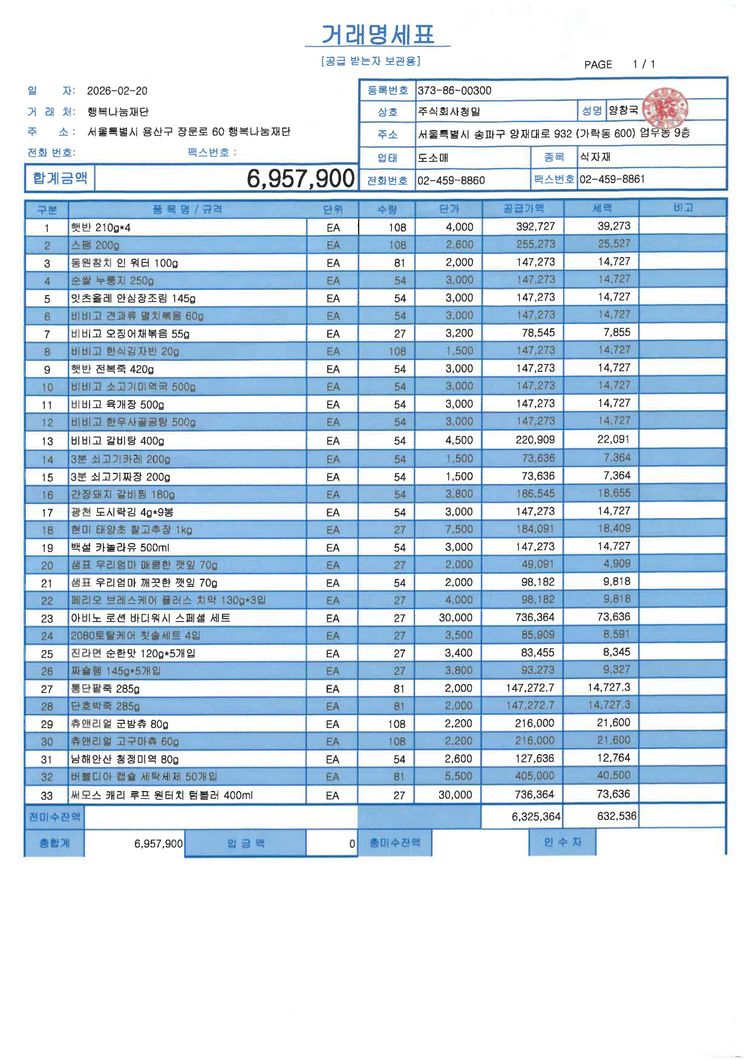 * 배송비 등 추가비용 발생시 행복나눔재단 이 부담합니다.