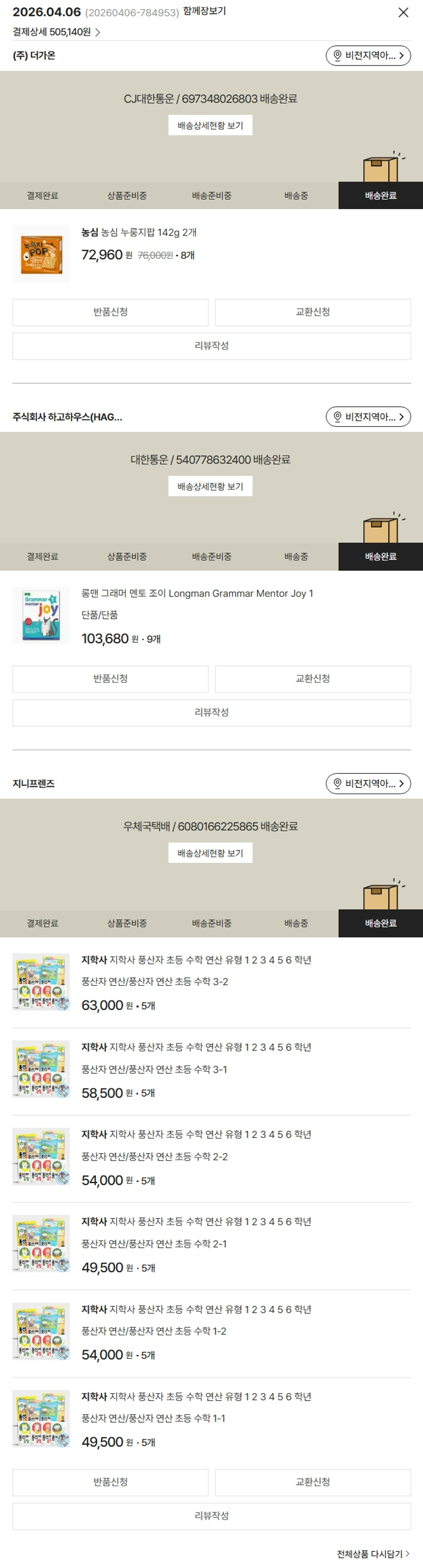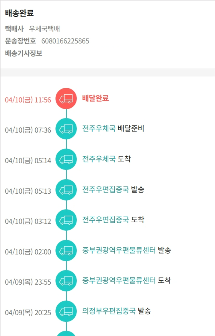 가격상승분 6,460원, 100원 미만 지원금 80원, 결제 수수료 11,403원, 기타 사업비는 행복나눔재단이 부담했습니다. (기부후기 발송시점에 최종 업데이트 됩니다.) 실제 쇼핑몰에서 확인되는 배송현황을 캡처한 내용입니다. 실시간 자료와는 차이가 있을 수 있습니다.