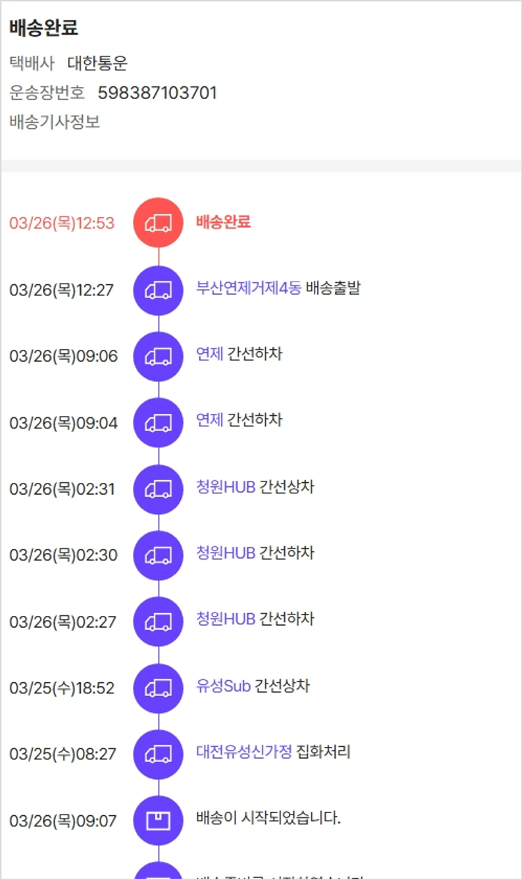 가격상승분 7,580원, 100원 미만 지원금 90원, 결제 수수료 15,369원, 기타 사업비는 행복나눔재단이 부담했습니다. (기부후기 발송시점에 최종 업데이트 됩니다.) 실제 쇼핑몰에서 확인되는 배송현황을 캡처한 내용입니다. 실시간 자료와는 차이가 있을 수 있습니다.