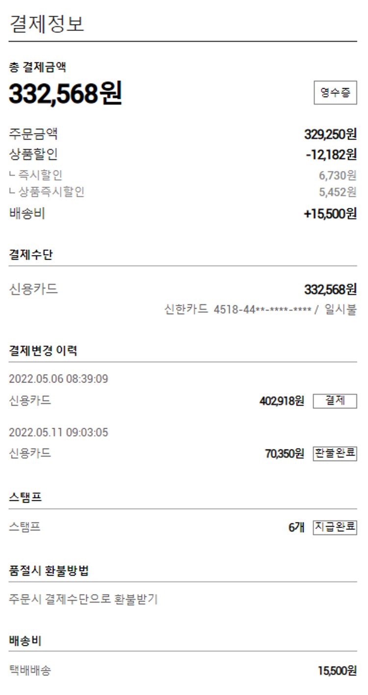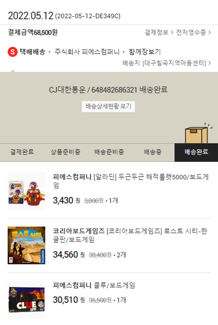 기부자님이 사용한 기부포인트 38,000원, 물품배송비 15,500원, 가격상승분 6,450원, 100원 미만 지원금 18원, 결제 수수료 7,911원, 기타 사업비는 행복나눔재단이 부담했습니다. (기부후기 발송시점에 최종 업데이트 됩니다.) 실제 쇼핑몰에서 확인되는 배송현황을 캡처한 내용입니다. 실시간 자료와는 차이가 있을 수 있습니다.