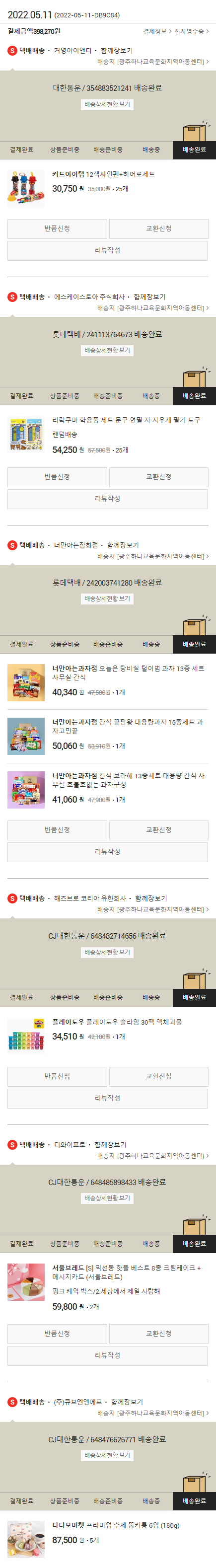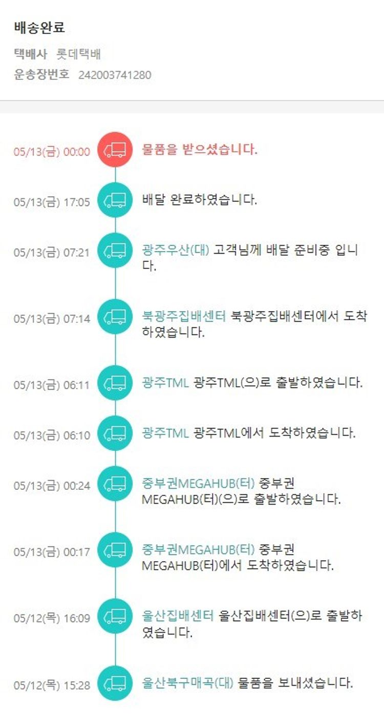 기부자님이 사용한 기부포인트 45,850원, 가격상승분 6,940원, 100원 미만 지원금 30원, 결제 수수료 8,562원, 기타 사업비는 행복나눔재단이 부담했습니다. (기부후기 발송시점에 최종 업데이트 됩니다.) 실제 쇼핑몰에서 확인되는 배송현황을 캡처한 내용입니다. 실시간 자료와는 차이가 있을 수 있습니다.